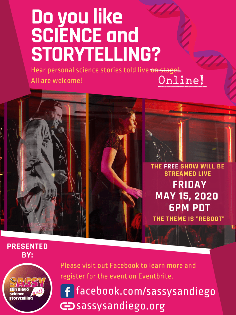 May 15th, 2020: Reboot (Virtual event in collaboration with the Fleet Science Center). Watch it here!